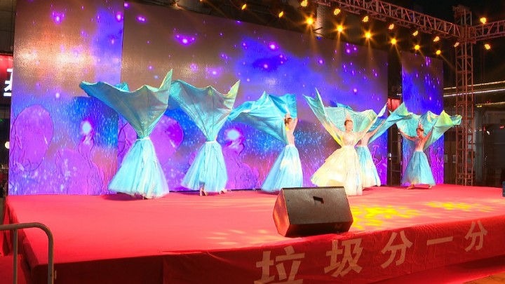 晚上7點,伴隨著悠揚的音樂開場舞《幸?;ㄩ_》演出拉開帷幕,快板《垃圾分類好處多》、兒童舞蹈《垃圾分類要牢記》...一個個精彩的節(jié)目輪番上演,市民也在觀看精彩節(jié)目的同時,了解到很多垃圾分類的知識點。